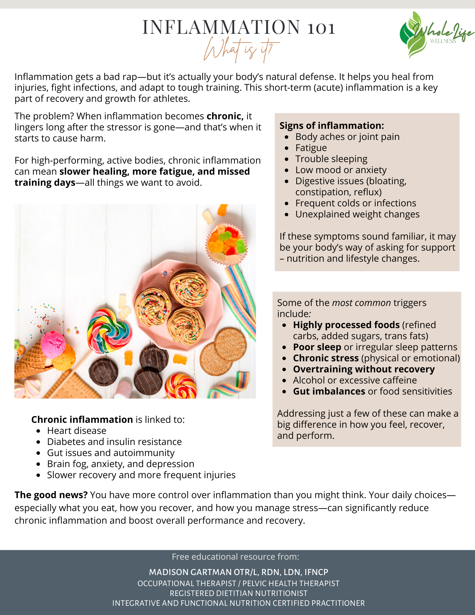 Feeling tired, inflamed, or just off your game? This free guide is your go-to resource for understanding and reducing chronic inflammation through food, lifestyle, and smart supplementation.